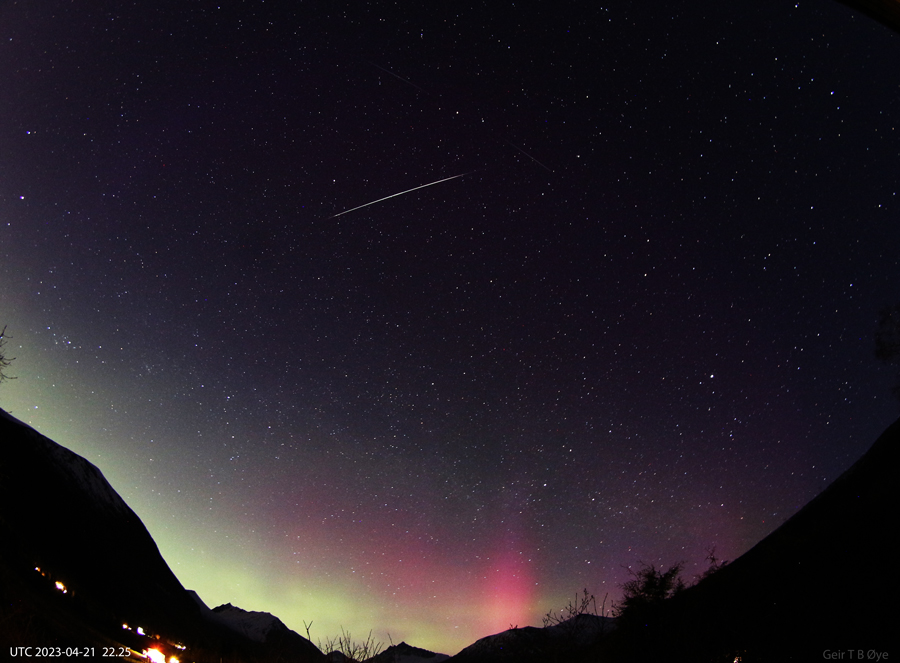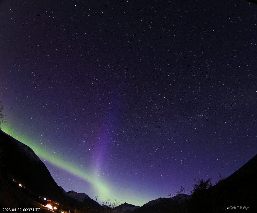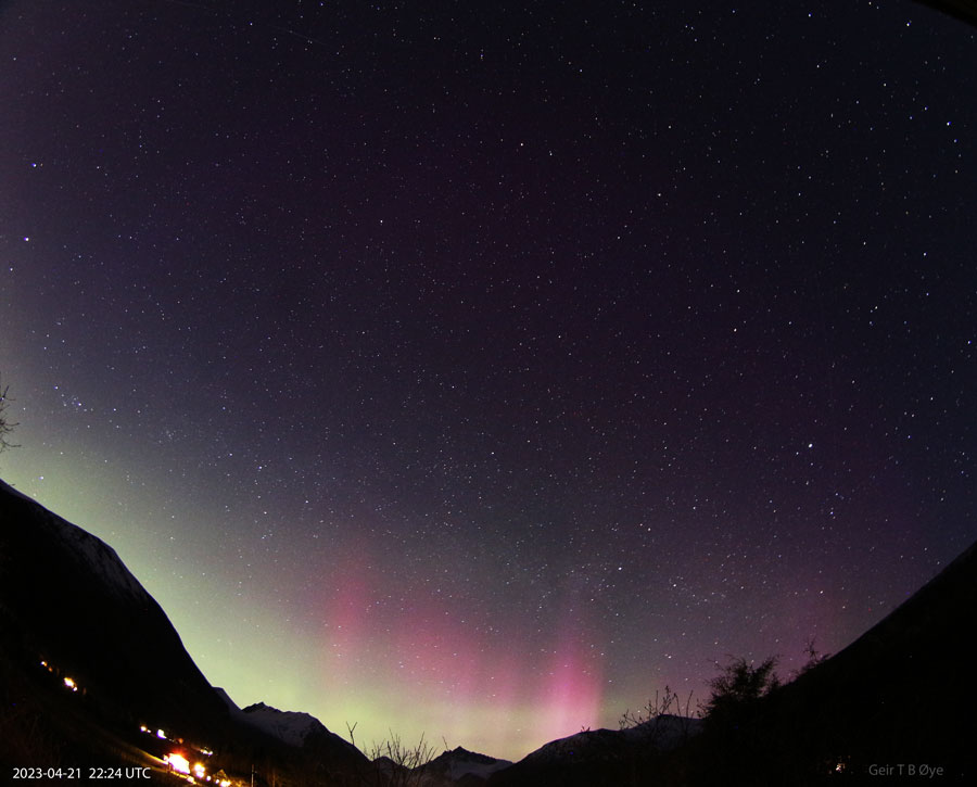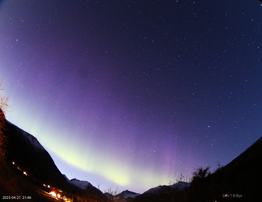 The Nordic night sky is getting shorter and shorter as summer approaches. But, there is still some night darkness. Here are a few photos from last nights (April 21/22, 2023) auroral activity. Please, find timestamp on the images. Photo details: Canon 650D, 8 mm fisheye-lens.