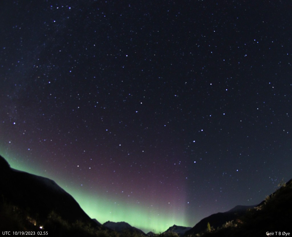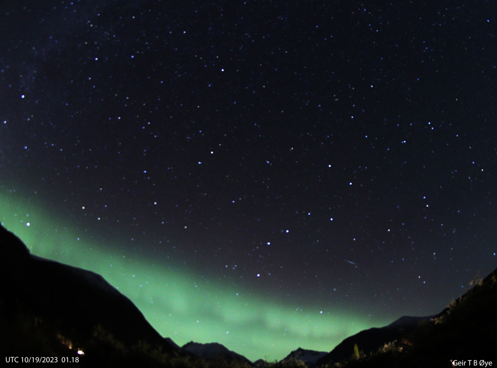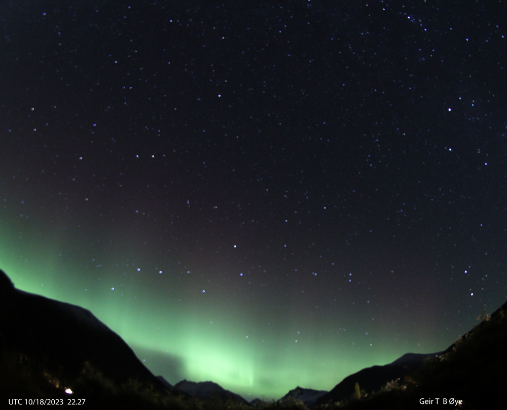 Auroral activity over several hours on the night of October 18/19, 2023. As observed / seen from this vantage point. Please, find timestamps on the photos. Photo details: Canon 250D, 8 mm fisheye-lens.