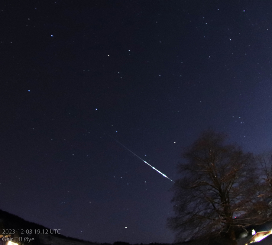 Fireball / Eldkule /Ildkule. December 03, 2023. Leave a reply Fireball photographed from Ørsta, Norway. Video recorded from Ullaland, Naustdal, Norway. This meteor appeared later. Share this: Share on X (Opens in new window) X Share on Facebook (Opens in new window) Facebook Like Loading... Related