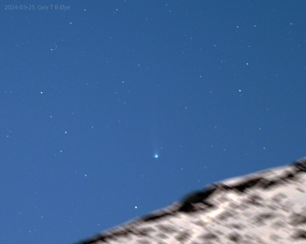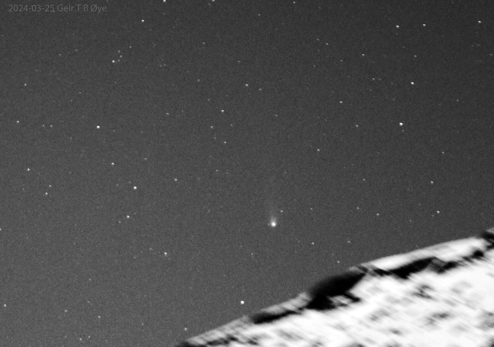 Comet 12P/Pons-Brooks. March 25, 2024. Leave a reply Comet 12P/Pons-Brooks in a moonlit sky over the mountainside. Details: Sigma 50-500 mm lens, Canon 250D. Share this: Share on X (Opens in new window) X Share on Facebook (Opens in new window) Facebook Like Loading... Related