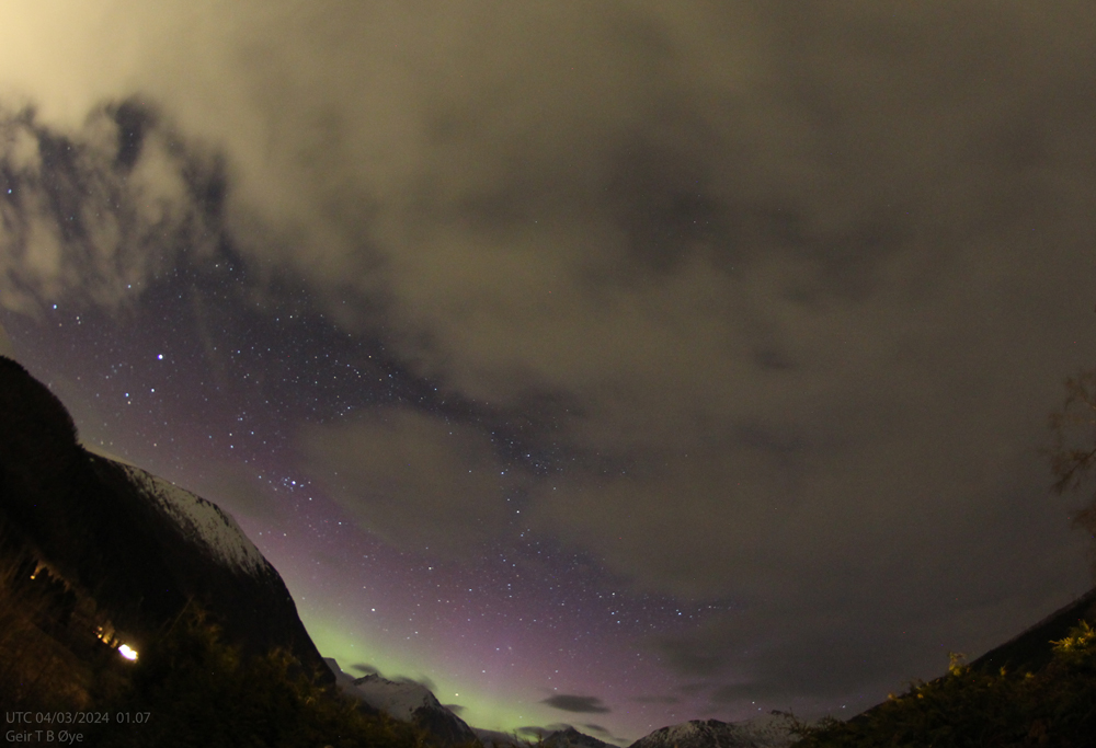 Northern lights. April 03, 2024. Leave a reply Colorful aurora borealis in the northern sky, and in-between clouds. Share this: Share on X (Opens in new window) X Share on Facebook (Opens in new window) Facebook Like Loading... Related