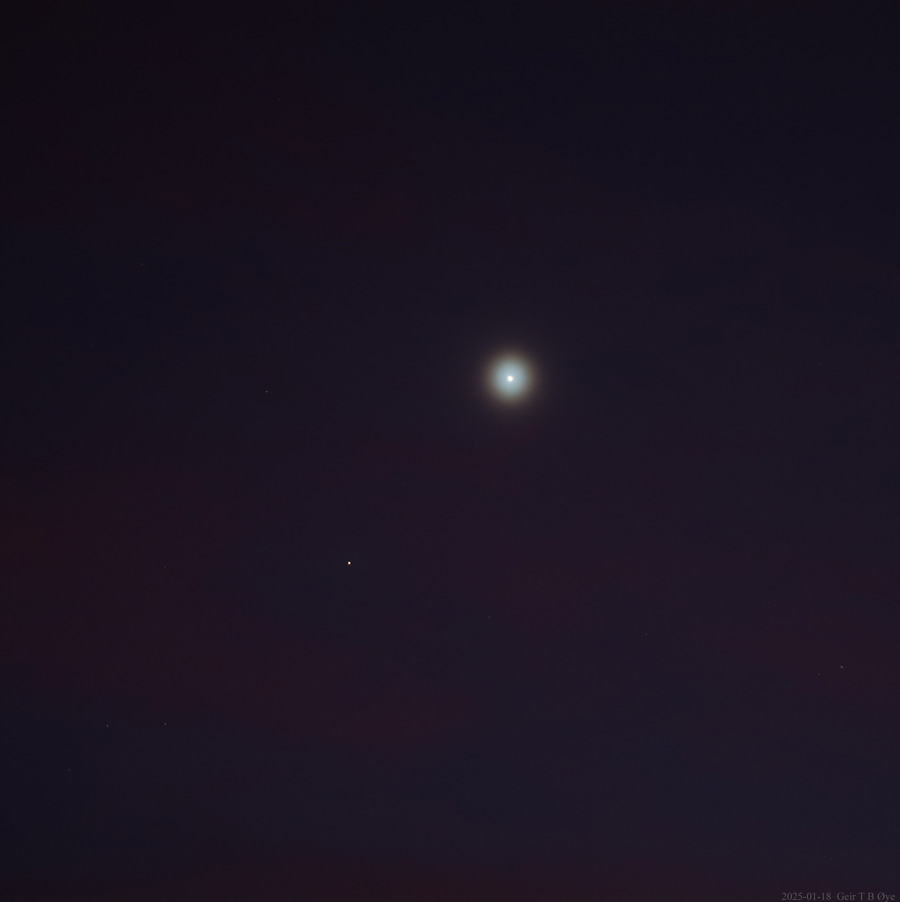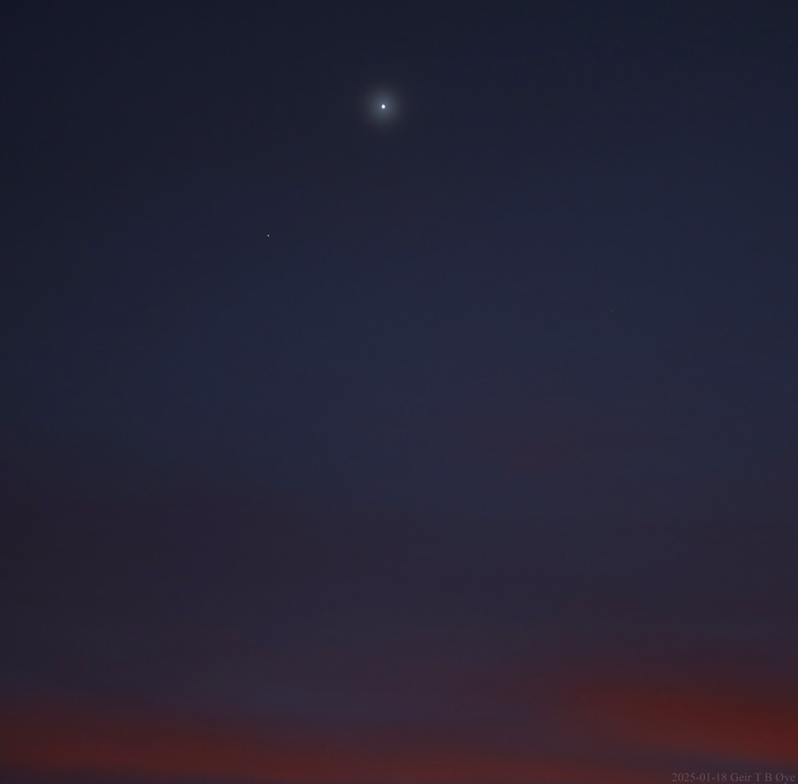 Beautiful planet conjunction (Venus-Saturn) in a colorful afternoon sky. Ørsta, Norway. Photo details: Canon EOS RP, Sigma 50-500mm.