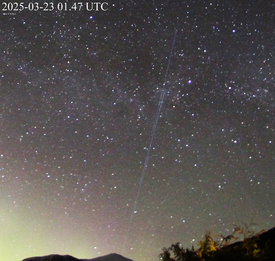 Aurora, and SpaceX. March 22-23, 2025. Leave a reply SpaceX over the mountains in the evening (2025-03-22 UTC 20.38). Share this: Share on X (Opens in new window) X Share on Facebook (Opens in new window) Facebook Like Loading... Related