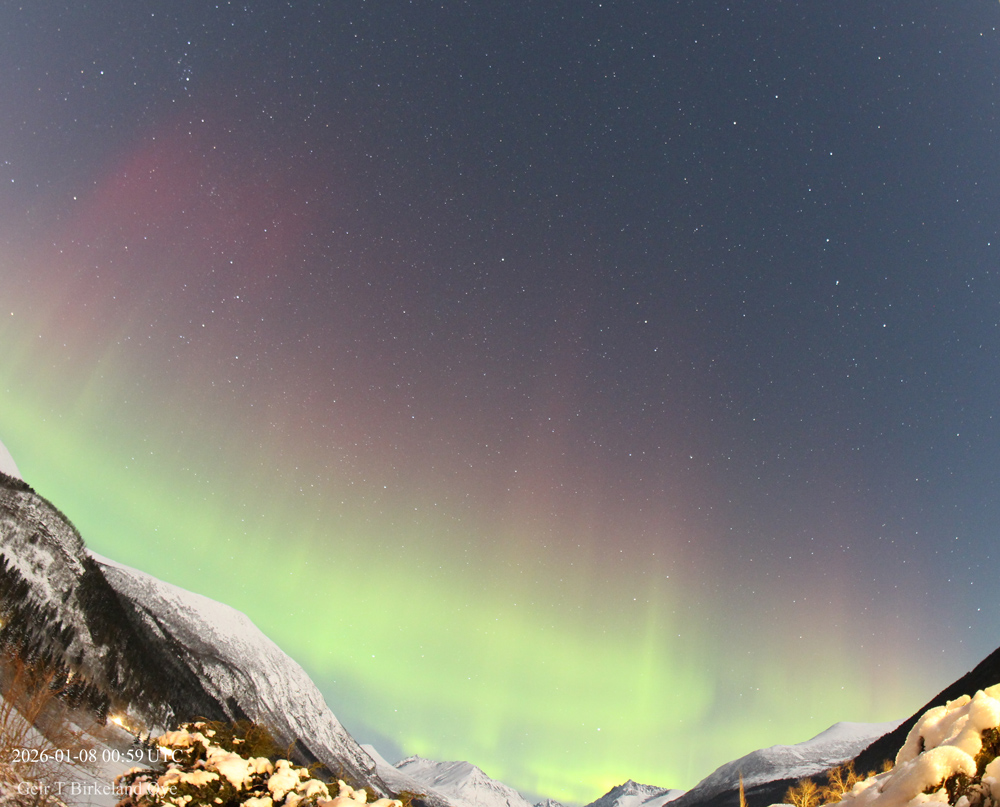A few images of the Northern lights taken on (a cold (-20 degrees C)) night of January 7-8, 2026. An auroral band developed in the north at around midnight local time. My first observation of the aurora this year. Please, find images enclosed with time in UTC. Details: Canon 650D, 8mm fisheye-lens, Iso:1600, various exposure times