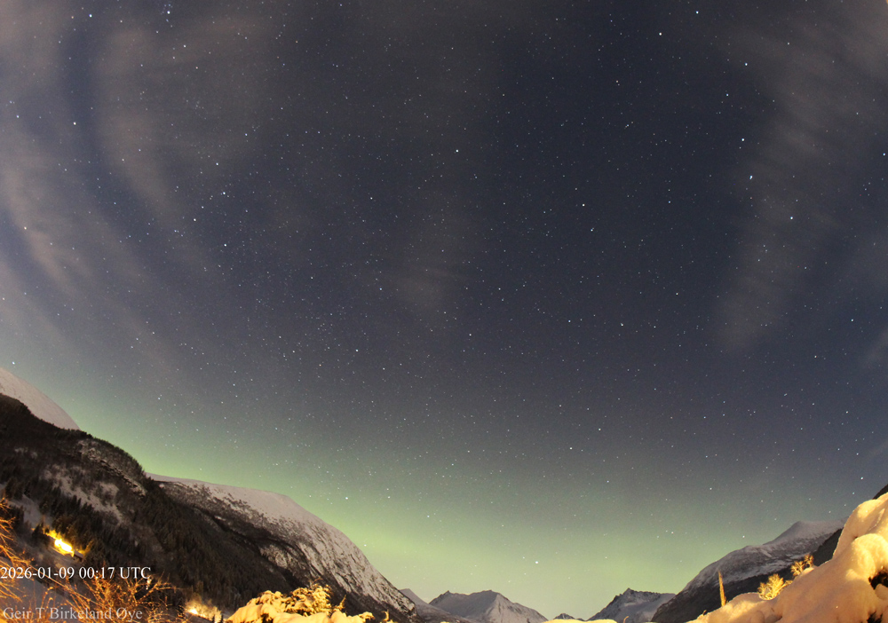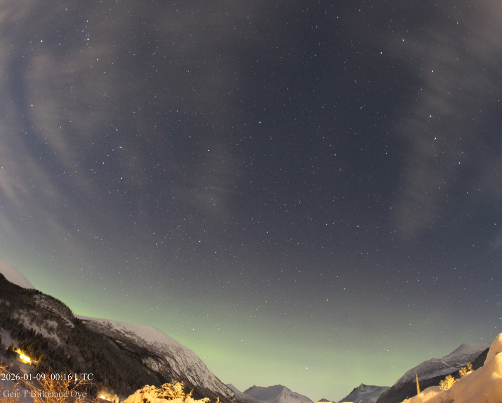 Auroral lights in the sky on the night of January 8-9, 2026. Here are a few images of the display. Photographed using a frozen Canon 650D, and an 8mm fisheye lens.
