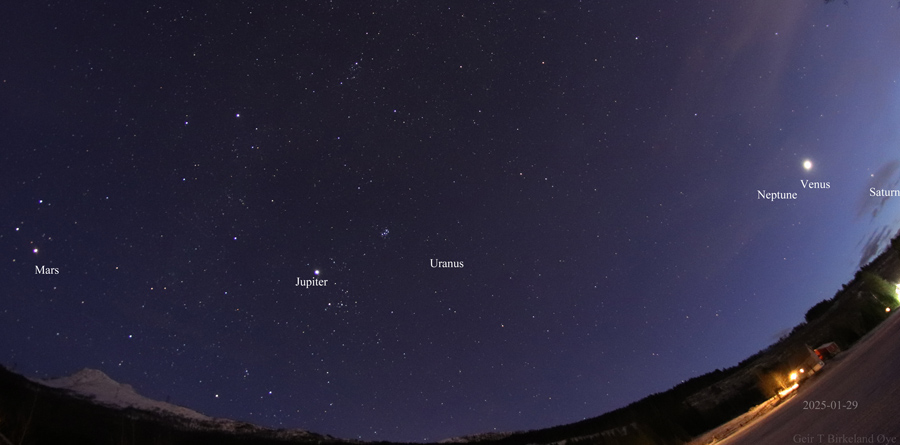 It is fascinating to stand outside and watch this January’s planetary parade. Especially, as the sky transits from afternoon to evening, and the sky gradually darkens. Photo details: Canon 800D, Samyang 8mm fisheye-lens.